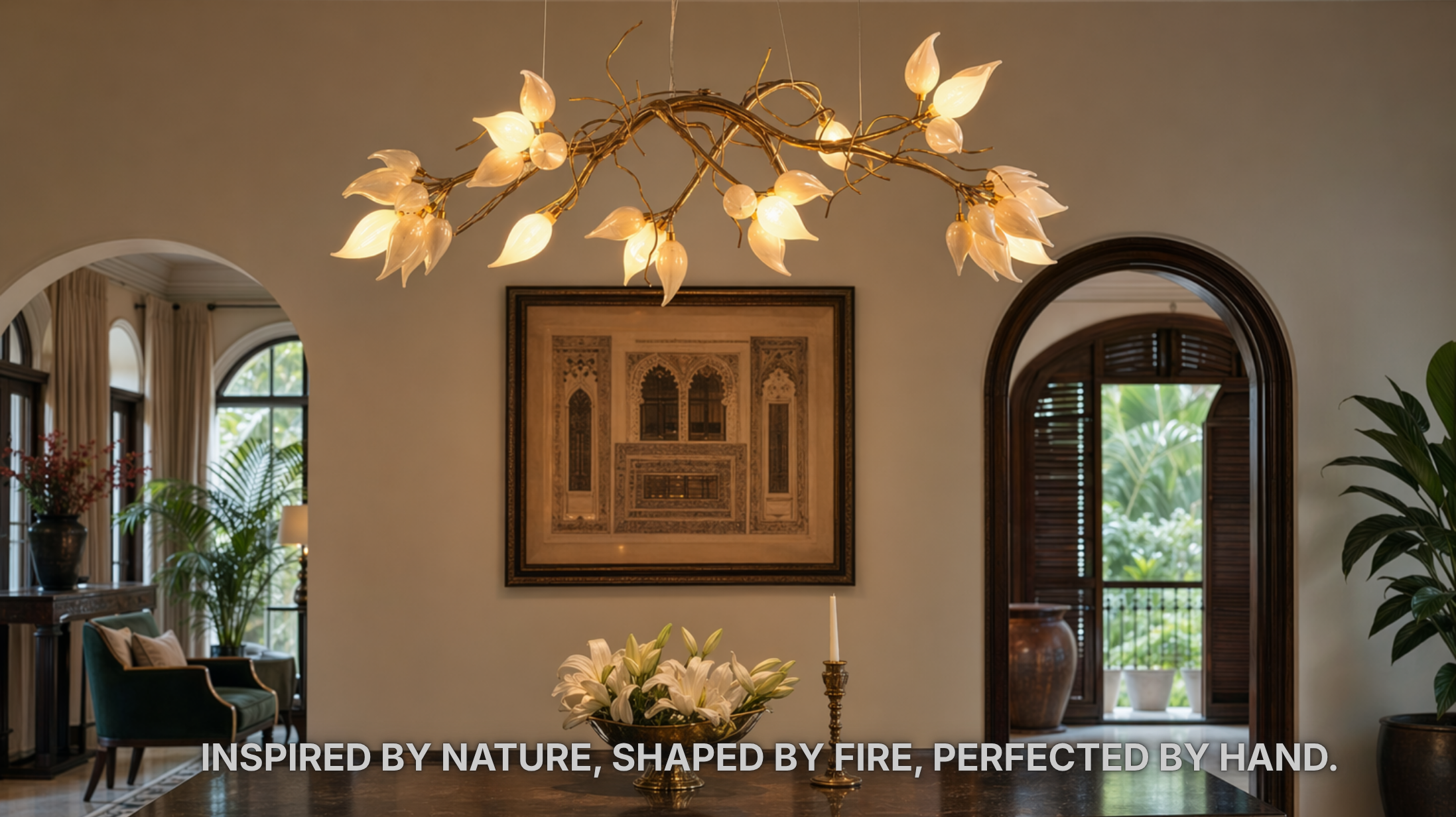 Discover a curated collection of handcrafted chandeliers, pendant lights, wall art, sculptures, and vases, each designed to bring warmth, elegance, and individuality to your space.