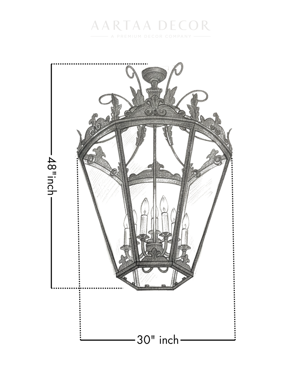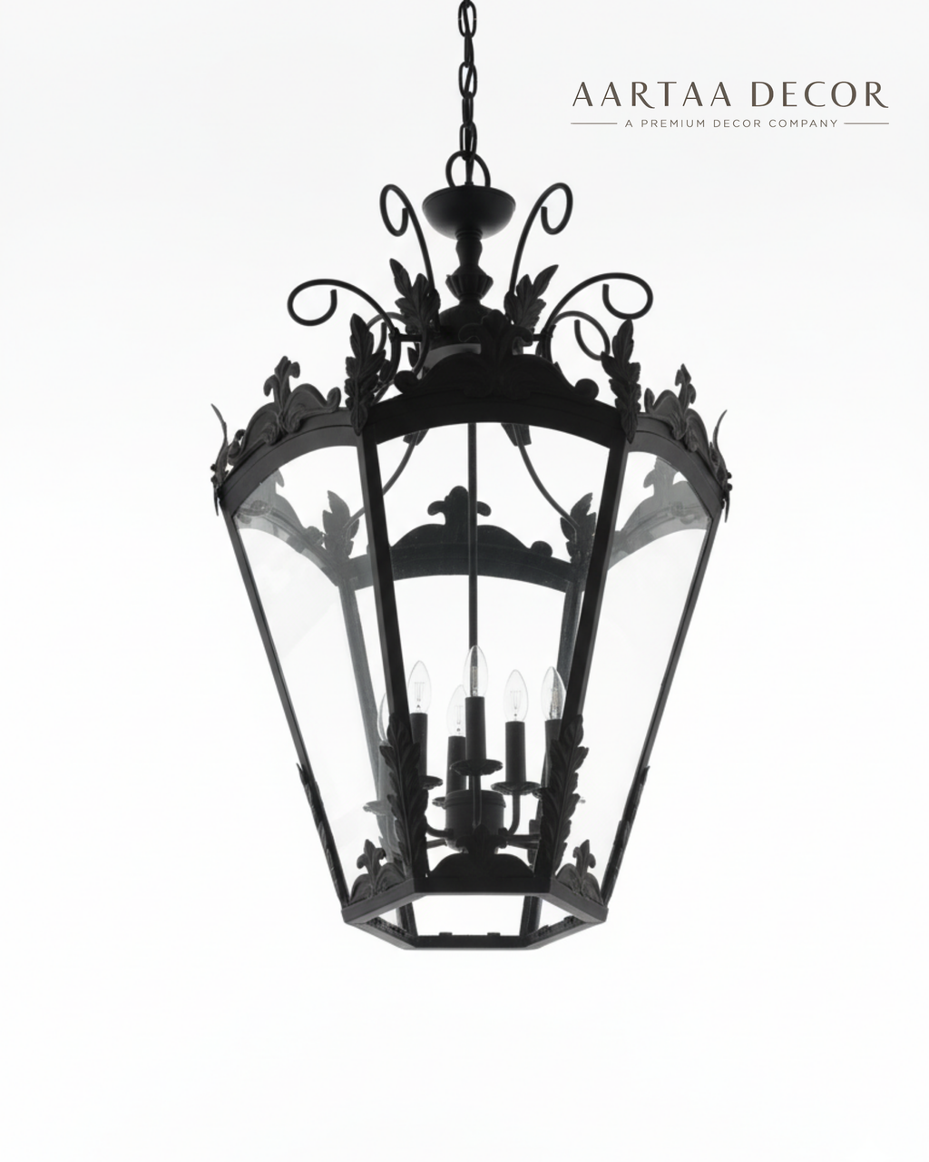 Its intricate crown detailing, sculpted leaf motifs, and twelve soft candle-style lights create a majestic play of light and shadow — transforming any room into a story of regal elegance. Whether placed in a grand foyer, heritage villa, or luxury living space, this chandelier becomes the soul of your décor — a reflection of the Aartaa Decor philosophy: where design meets devotion.