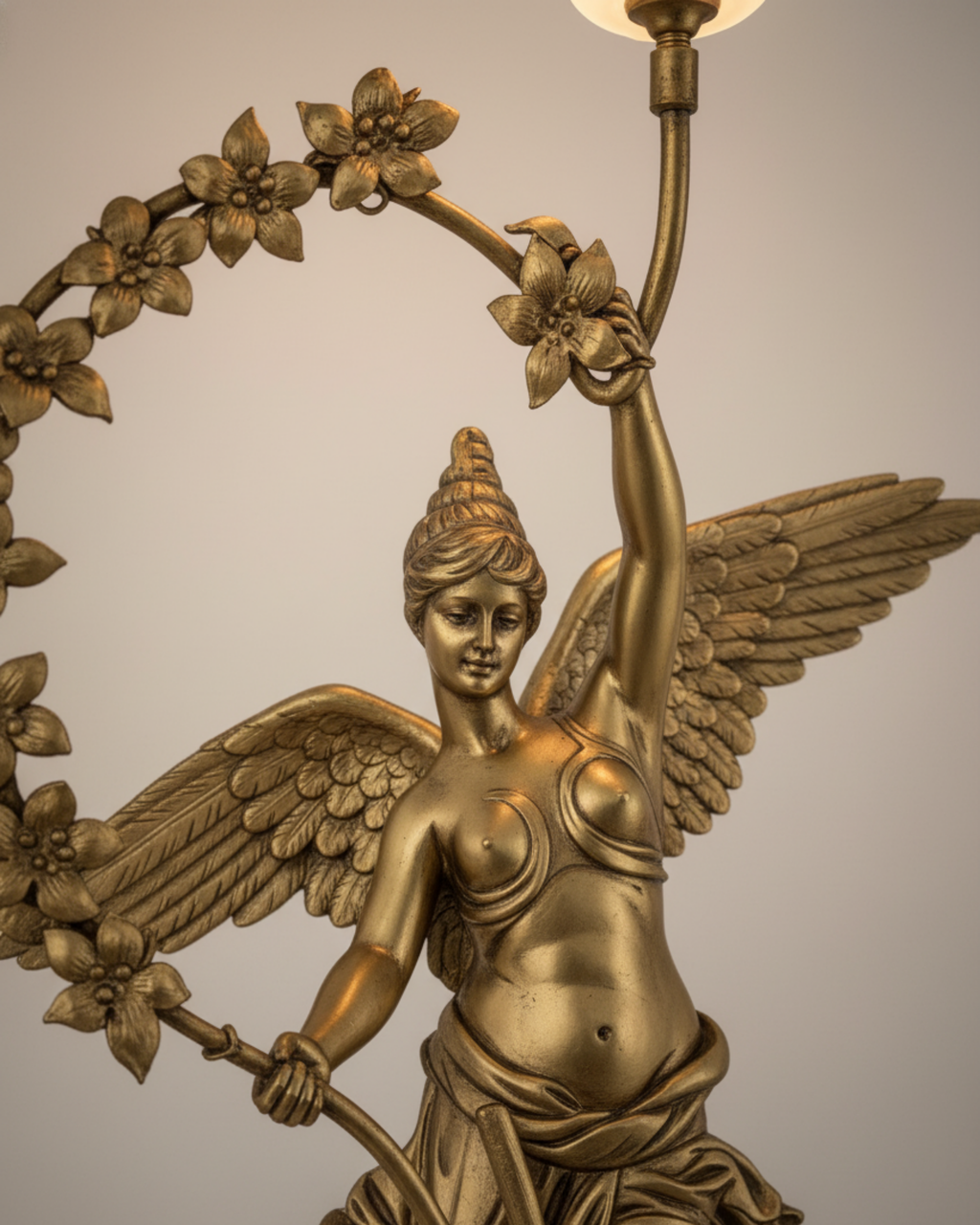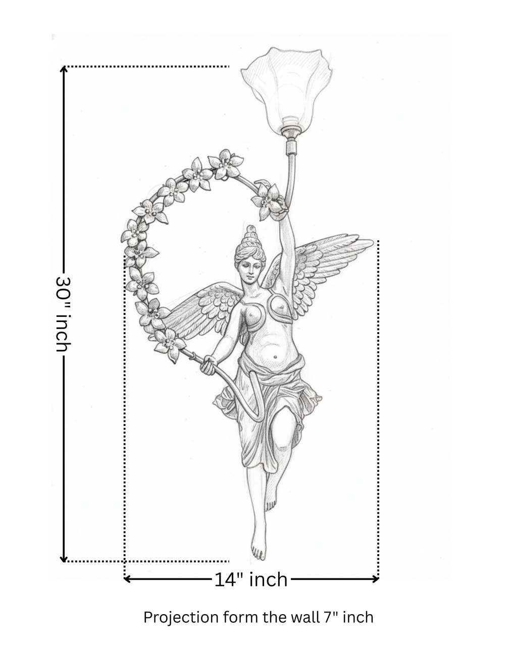 Inspired by celestial forms and classical movement, the figure’s poised stance and floral ring symbolically echo joy, light, and artistic refinement. Designed for homeowners and spaces that value timeless beauty, Devika Royale Celestial is more than a light — it is a heritage accent that transforms walls into stories.
